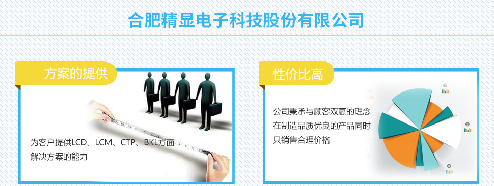 ?合肥精顯電子科技股份有限公司成立于2012年,由液晶行業(yè)知名企業(yè)廈門精顯電子有限公司投資建設(shè),是一家研發(fā)、生產(chǎn)、銷售高品質(zhì)液晶屏(LCD)、液晶顯示模塊(LCM)、背光(LED)、電容式觸摸屏(CTP)等節(jié)能環(huán)保產(chǎn)品并能為顧客提供解決方案的高新科技企業(yè)。 ?公司占地55畝,擁有建筑面積超過(guò)20000平米和潔凈廠房5400平米。 ?公司擁有一個(gè)超過(guò)15年以上LCD行業(yè)運(yùn)營(yíng)制造經(jīng)驗(yàn)的團(tuán)隊(duì)。 ?公司獲得研發(fā)專利20余項(xiàng)。 ?公司通過(guò)C-TPAT認(rèn)證,ISO9001:2008認(rèn)證,產(chǎn)品通過(guò)了ROHS、REACH。 ?我們產(chǎn)品廣泛應(yīng)用于智能儀表(水表,電表,氣表)、家電、儀器儀表、計(jì)量器械、文教 器具、UPS電源、智能手機(jī)機(jī)、平板電腦等電子產(chǎn)品的顯示和控制。目前我們已樹(shù)立了良好的品牌形象,并與眾多公司(如GE, Ja...更多>